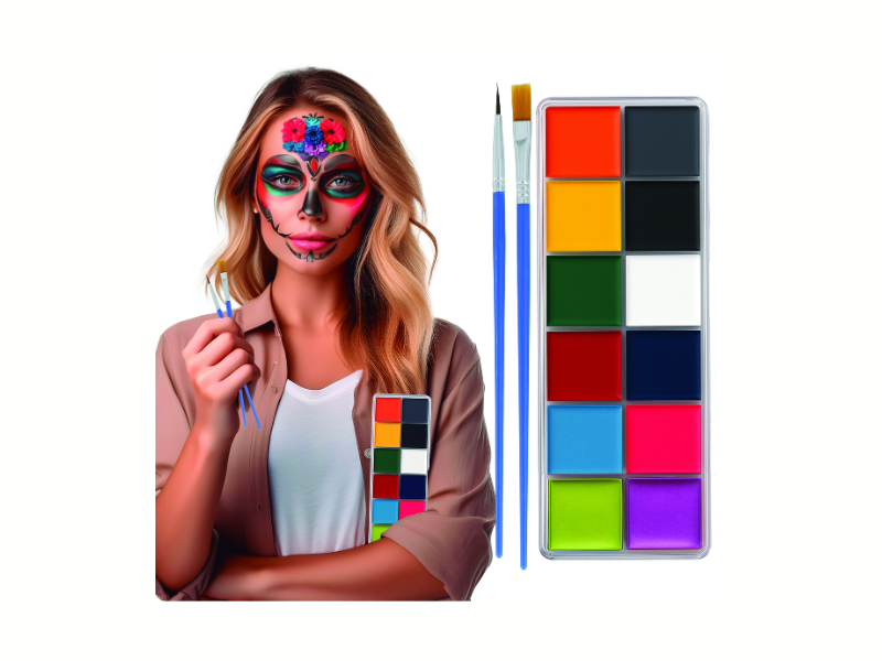 Skapa den perfekta looken med detta kompletta sminkset! Med hela 12 olika färger kan du enkelt måla fram både roliga, färgglada och läskiga karaktärer - perfekt till maskerad, teater eller Halloween.