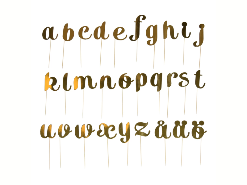 Gör tårtan extra festlig med dessa eleganta cake toppers! Setet innehåller hela alfabetet så att du kan skapa egna ord och personliga hälsningar - perfekt för födelsedagar, bröllop, dop eller andra firanden.