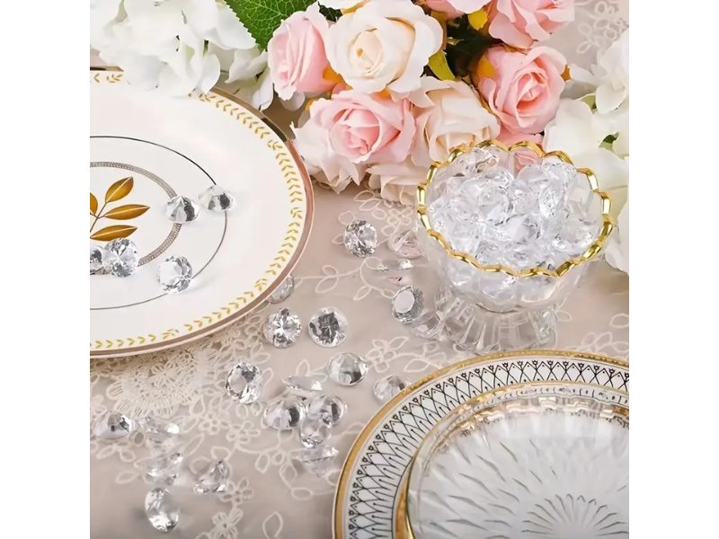 Ge din dekoration en lyxig touch med dessa vackra små dekorationsdiamanter! Perfekta för festdukningar, blomsterarrangemang eller kreativa pysselprojekt.