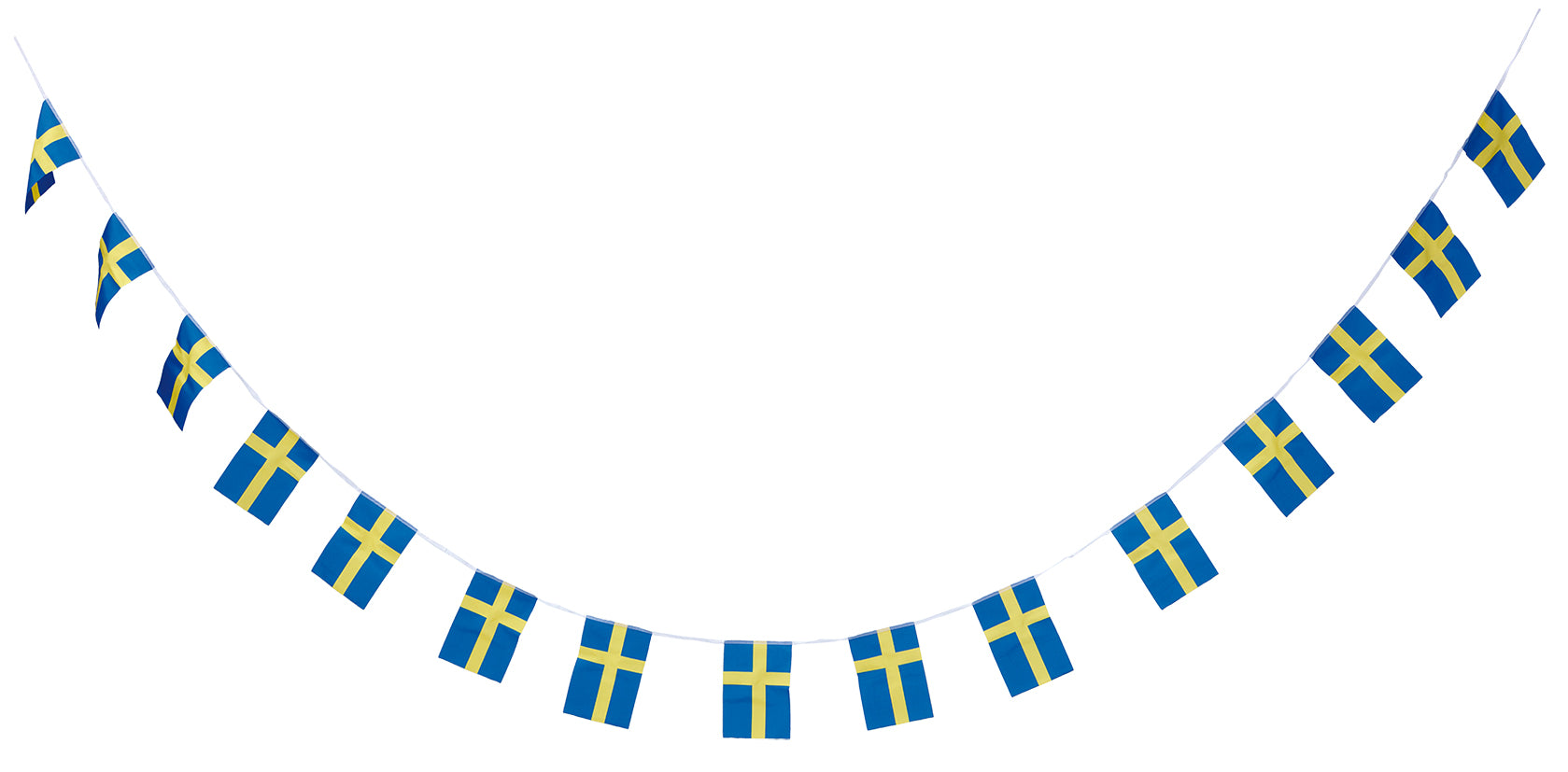 Svensk flaggirlang i tyg på hela 5 meter – en ypperlig dekoration till sommarfesten! Sverigeflaggan gör sig utmärkt till studenten, födelsedagsfirandet, nationaldagen eller midsommarfesten.