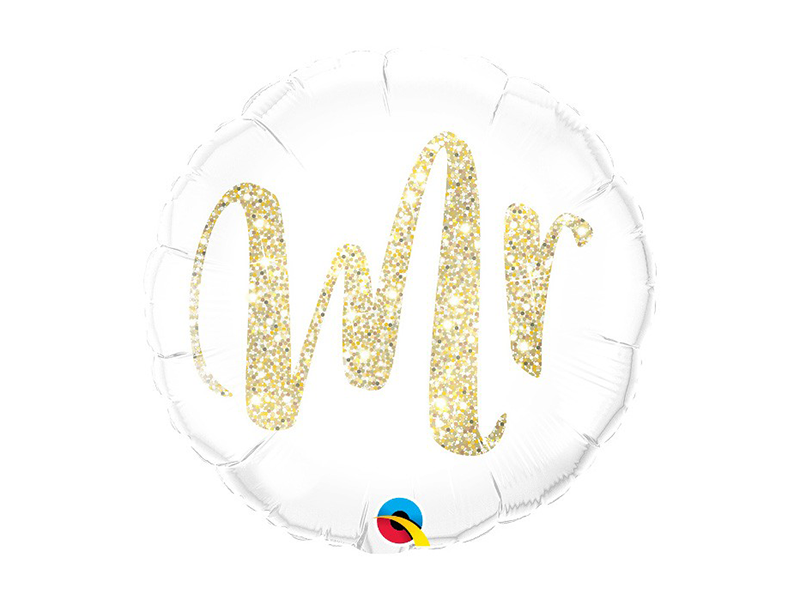 Denna eleganta "Mr" folieballong är perfekt för bröllop eller som en överraskning till honom på er årsdag. Denna ballong mäter 46 cm i diameter och har glittrande guldbokstäver på en klassisk vit bakgrund, vilket ger ett sofistikerat och festligt intryck.