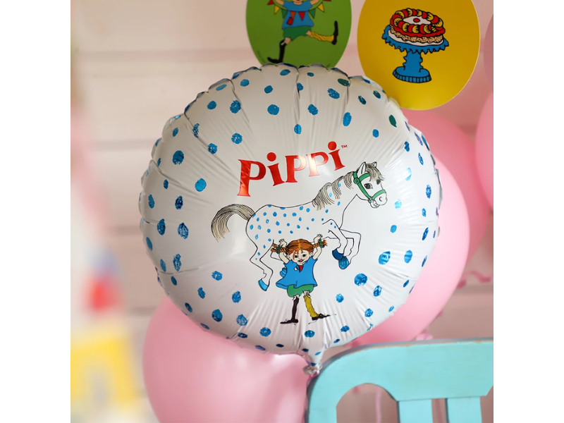 Fira med världens starkaste och roligaste tjej! Denna runda folieballong med färgglatt motiv av Pippi Långstrump blir en perfekt dekoration till barnkalas eller temafest. Ballongen kan fyllas med helium eller luft.