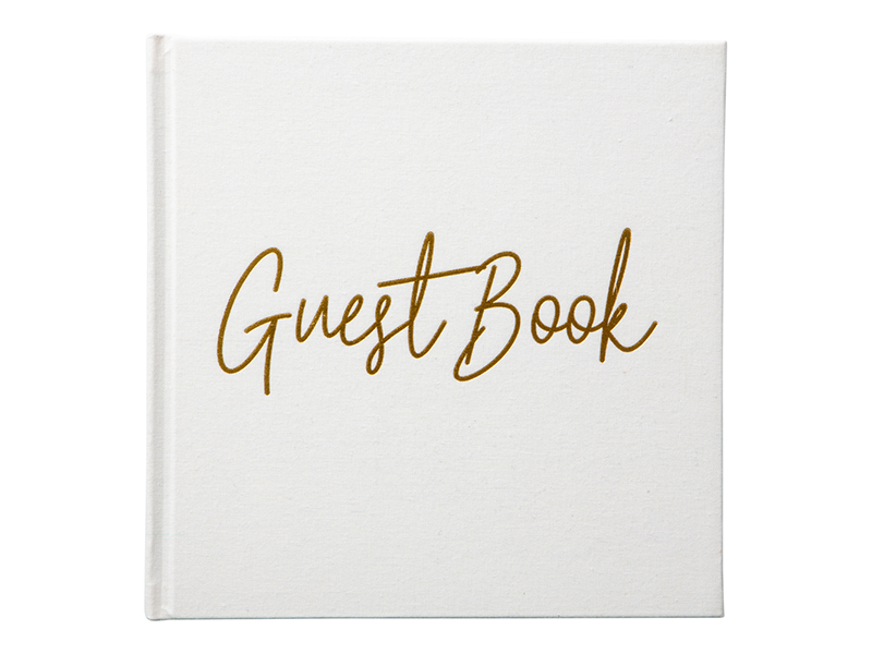 Skapa ett minne som varar med vår eleganta gästbok. Den vita boken med text i guld är en perfekt detalj för bröllop, baby showers, eller andra sammankomster. Låt dina gäster skriva sina tankar, önskningar och råd som du kan skatta och återbesöka genom åren.