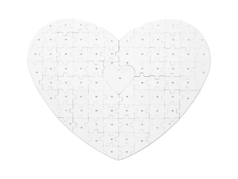 Inför en unik twist på din nästa tillställning med detta charmiga gästbokspussel! Med 85 pusselbitar som tillsammans bildar ett hjärta på 45 x 35,5 cm, erbjuder det ett kreativt och interaktivt sätt för gästerna att dela sina hälsningar och välgångsönskningar. Varje bit blir en personlig notering som, när pusslet är komplett, skapar en hjärta som är perfekt att spara och visa som ett minne från din speciella dag.