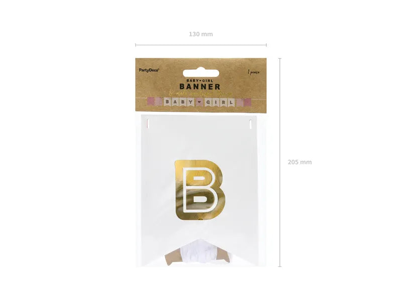 Fånga den söta och oskyldiga glansen av ditt lilla mirakel med vår fantastiska "Baby Girl" girlang! Mätande 15x175 cm är denna girlang en perfekt tillägg till alla babyshower eller välkomstfester för den nya prinsessan i ditt liv. Tillverkad i en bedårande kombination av rosa och vitt, accentuerad med elegant guldtext, är denna girlang en höjdpunkt i varje dekorationsschema. Med en tråd på 2,5 cm är den enkel att hänga upp och skapar omedelbart en gullig och festlig atmosfär. Vår "Baby Girl" Girlang är ett måste för att fira den glada ankomsten av din lilla älskling. Beställ idag och gör din fest till en minnesvärd händelse för alla att komma ihåg!