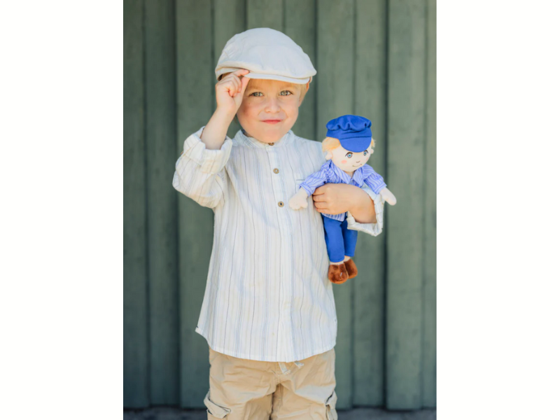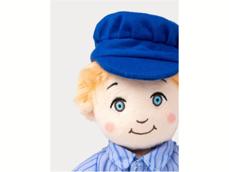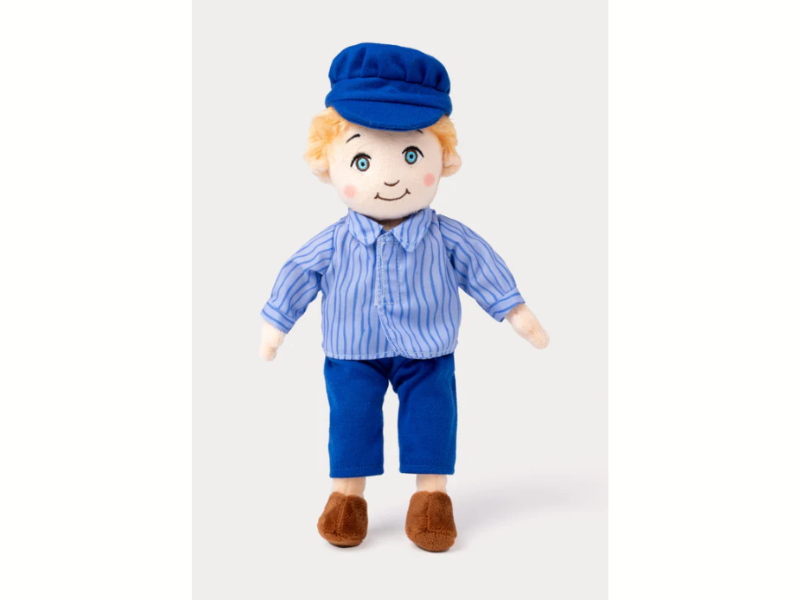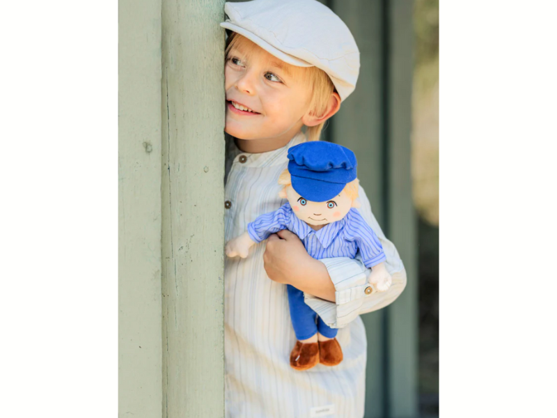 Här är Emil, den busiga pojken från Astrid Lindgrens älskade berättelser! Med sin blå- och vitrandiga skjorta, byxor och klassiska mössa är han redo för nya upptåg.