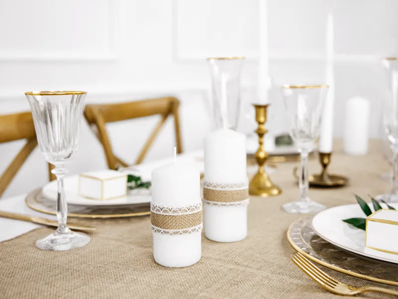 För att lägga till en rustik charm till din bröllopsdekoration eller för att skapa vackra detaljer till din blöjtårta, introducerar vi vårt eleganta juteband med vit spets! Med generösa 5x500 cm är detta mångsidiga band det perfekta valet för att lägga till en touch av naturlig skönhet till dina evenemang. Dess kombination av jute och vit spets skapar en romantisk och förtjusande atmosfär. Använd det för att dekorera bröllopsbord, stolar, buketter eller för att lägga till en fin touch till din blöjtårta. Tillverkat av högkvalitativt material för långvarig användning och enkel användning. Skapa minnesvärda ögonblick med vårt juteband med vit spets - beställ idag och låt din kreativitet blomstra.