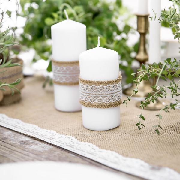 Det slitstarka jutetyget i kombination med den eleganta spetsen ger en naturlig och charmig touch till varje dekoration. Ett måste för dig som älskar lantlig elegans!