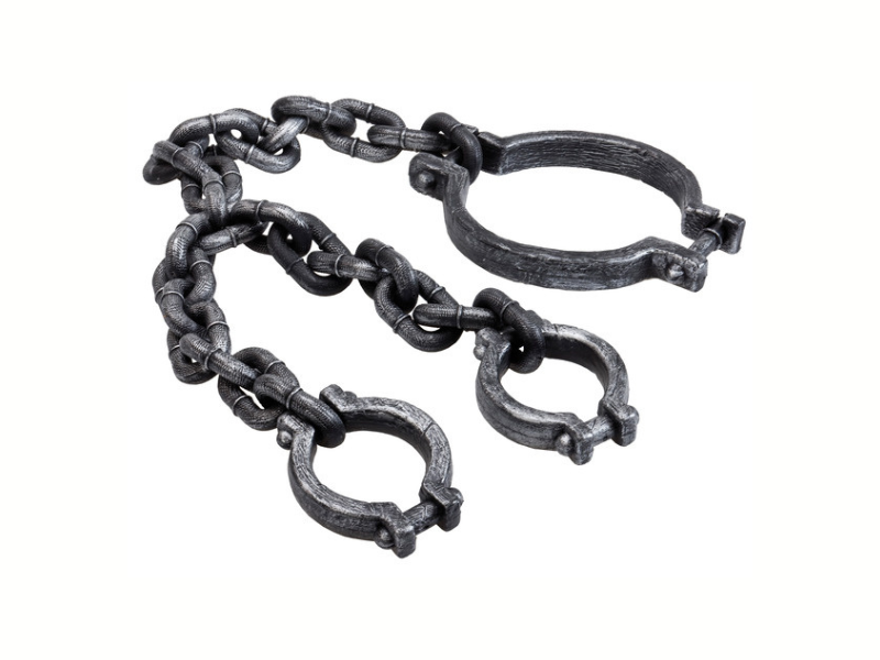 En robust kedjerekvisita i hårdplast med krage och handledsbojor – perfekt för allt från skräckkostymer till teaterscener. Ger en fångliknande look utan att vara tung eller obekväm.