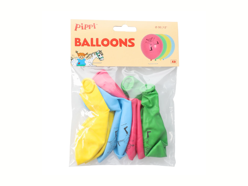 Kan fyllas med luft eller helium och passar lika bra som dekoration i rummet som till ballongbuketter. Kombinera gärna med andra Pippi-produkter för ett komplett kalastema!