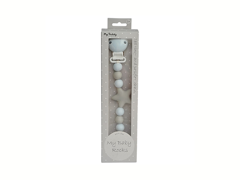 Håll nappen ren och nära till hands med denna fina napphållare från My Teddy by Tinka. Tillverkad av BPA-fri silikon för en säker och trygg användning för ditt barn.