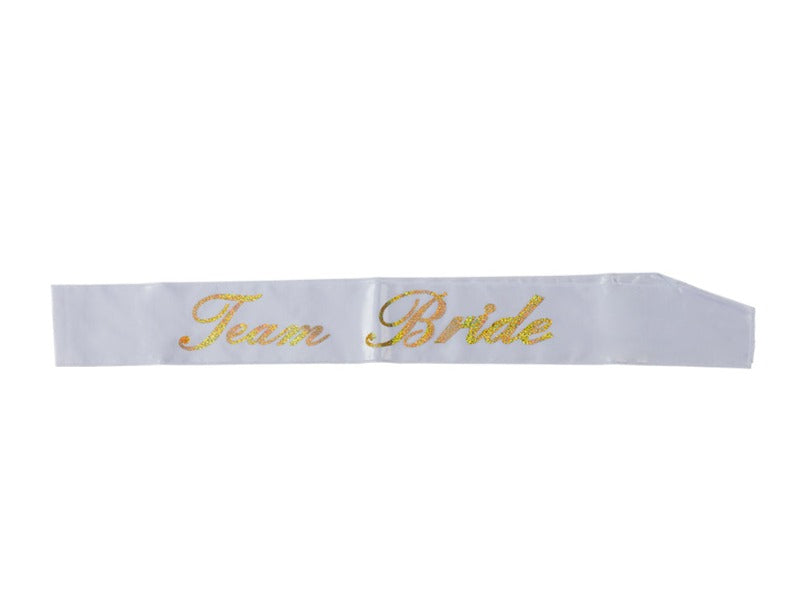 Fira möhippan med en extra touch av stil med detta "Team Bride" ordensband. Detta eleganta band är designat i en strålande vit nyans och accentuerat med glittrig guldtext, vilket skapar en lyxig och festlig look. Perfekt för gruppfoton och för att ena brudens tärnor och närmaste vänner under firandet!