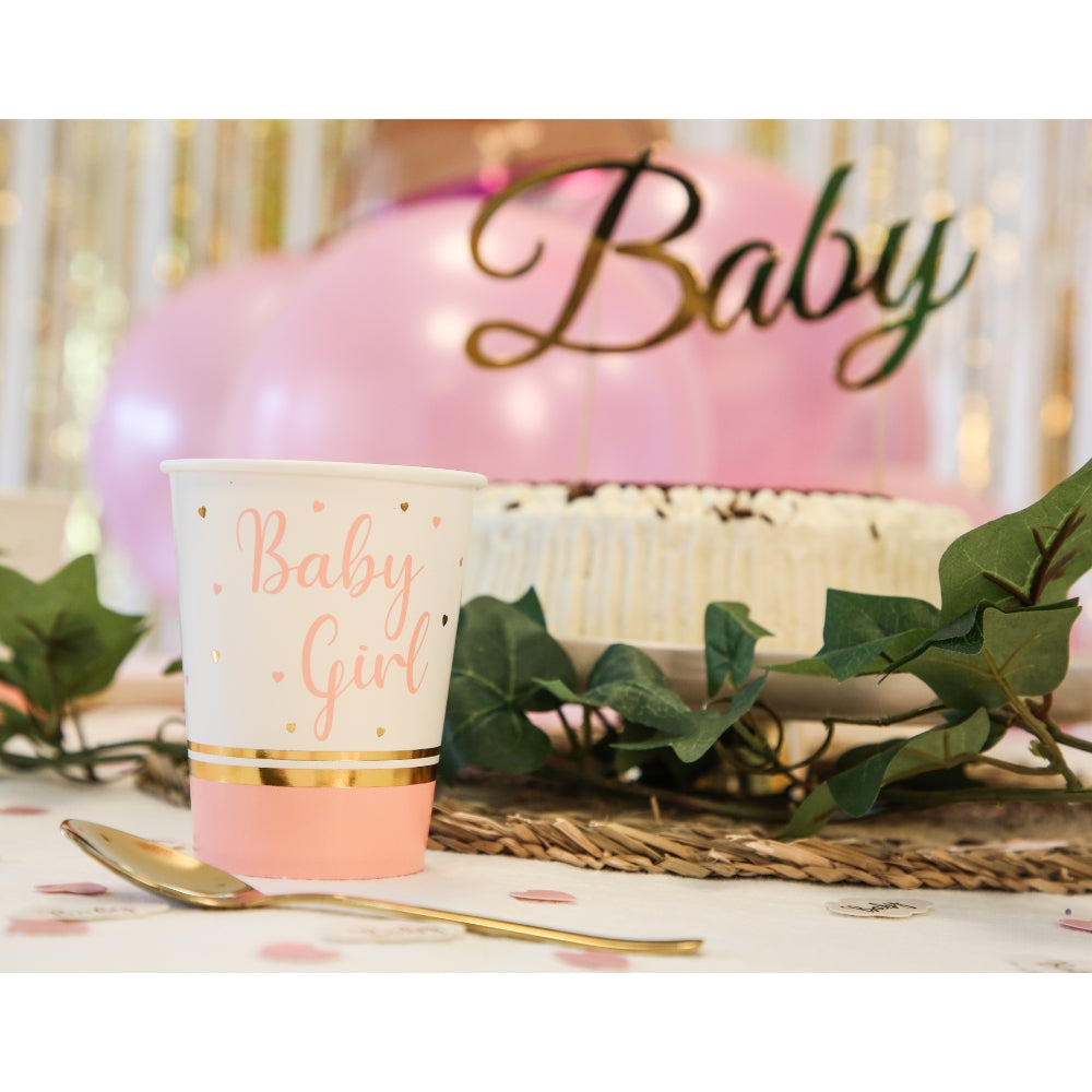 Fira den blivande lilla flickan med dessa bedårande "Baby Girl" pappersmuggar. I detta 8-pack kombinerar varje mugg en söt rosa botten med en elegant skrift och hjärtan i ett mjukt rosa färgschema, ackompanjerade av guldglittrande prickar. En gyllene kant avslutar designen med en lyxig touch. Dessa muggar är ett förtjusande tillskott till varje baby shower eller gender reveal och gör varje dryck till en del av festligheterna.