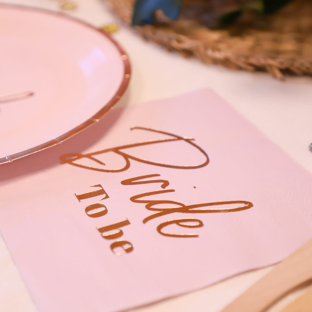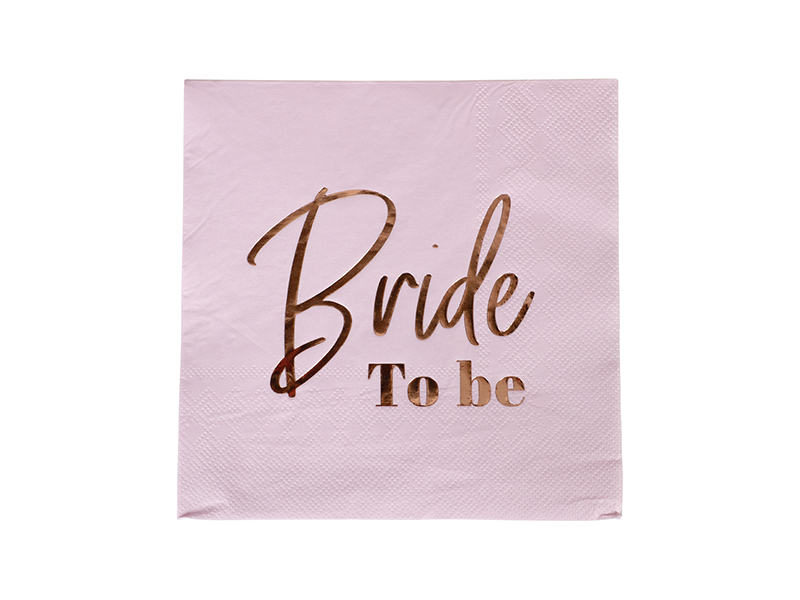 Förgyll bröllopsfesten med dessa eleganta pappersservetter i en ljuvlig ljusrosa nyans, prydda med den festliga texten "Bride To be" i skimrande guldtryck. Servetterna mäter generösa 33 cm när de är fullt utbredda, vilket gör dem perfekta för att lägga till en touch av glamour på matbordet eller buffén. Med sina mjuka toner och lyxiga detaljer blir de en fin dekoration och ett användbart tillbehör under hela firandet.