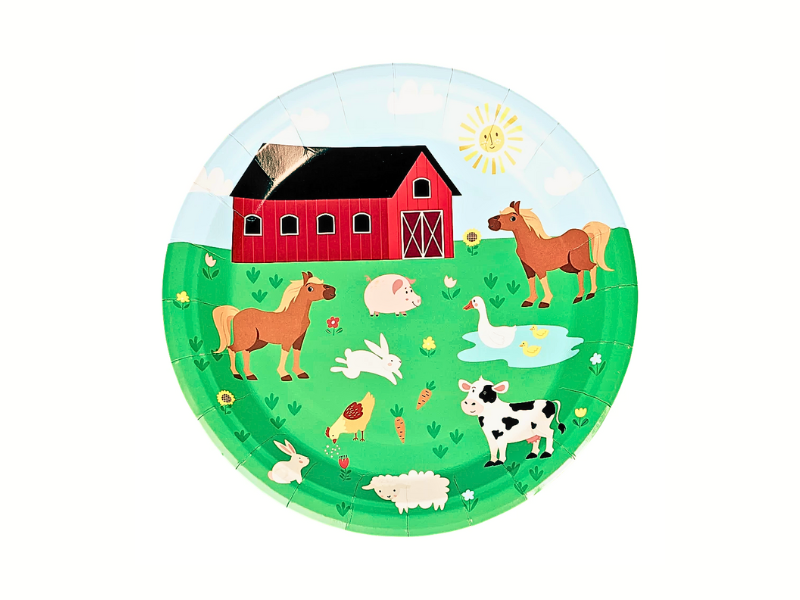 Duka upp till ett härligt kalas på landet med dessa charmiga papperstallrikar med bondgårdsmotiv! Perfekta för barnkalas, temafester eller picknick med lantlig känsla.