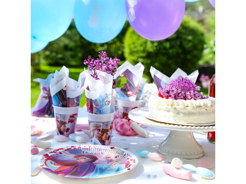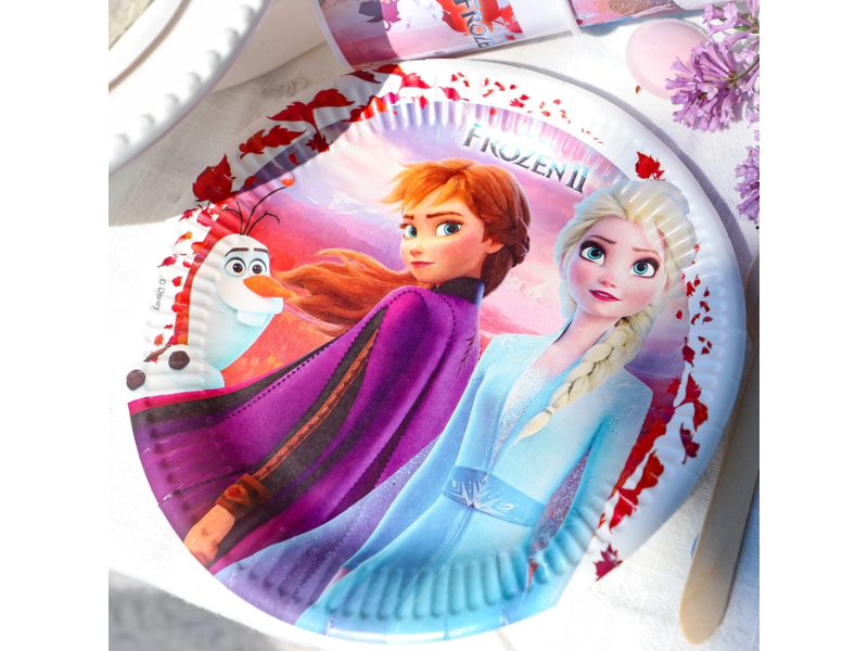 Duka upp för ett magiskt kalas med dessa vackra papptallrikar med motiv från Disney’s Frost 2! Perfekta för barnkalas och temafester där Elsa, Anna och deras förtrollade värld får stå i centrum. Tallrikarna är både praktiska och stämningsfulla - en hit bland små Frost-fans.