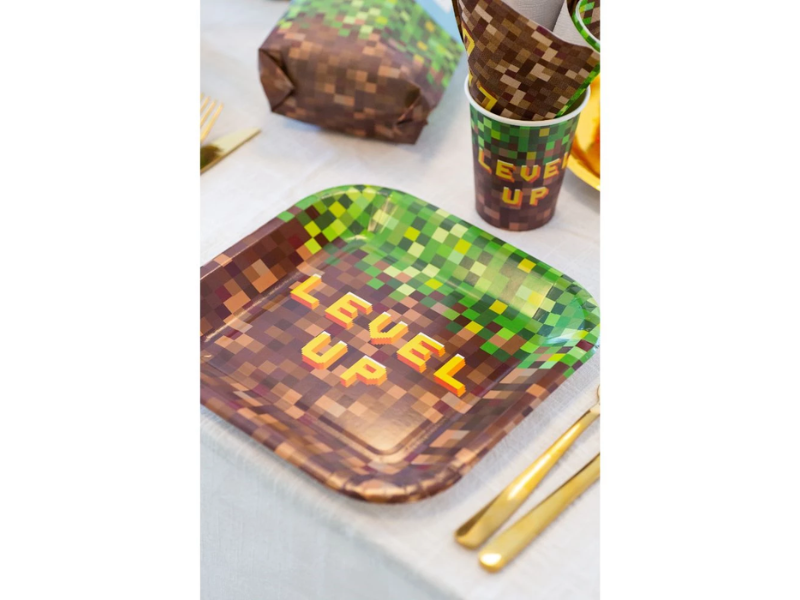 Gör kalaset extra kul med dessa färgglada tallrikar i gamingtema! Med sitt pixelmönster och texten "Level Up" passar de perfekt för spelälskare i alla åldrar.