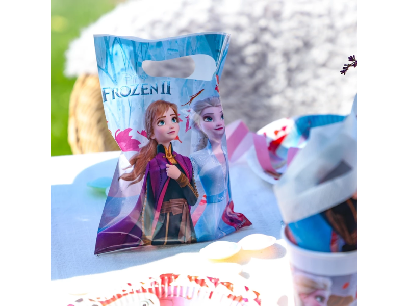 Gör kalaset ännu mer magiskt med dessa underbara partypåsar med motiv från Disney’s Frost 2! Perfekta att fylla med godis, små presenter eller pyssel som ett fint minne från en oförglömlig dag i sällskap av Elsa, Anna och deras vänner. Praktiskt bärhandtag gör dem enkla att dela ut.