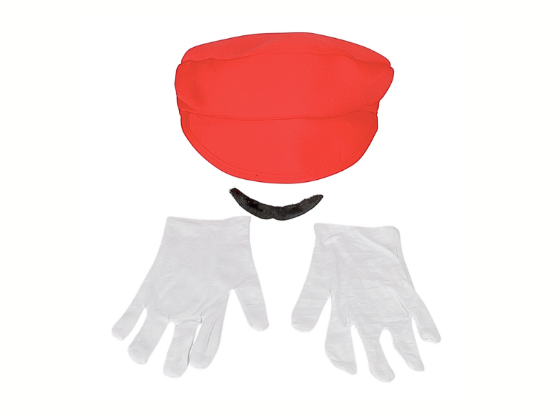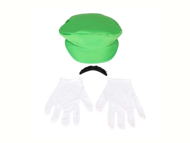 Kitet innehåller en grön alternativt röd mössa och ett par vita handskar som tillsammans skapar den klassiska rörmokar-looken. Mössan ger en fräsch och iögonfallande stil, medan handskarna adderar en snygg kontrast och en genomtänkt finish.