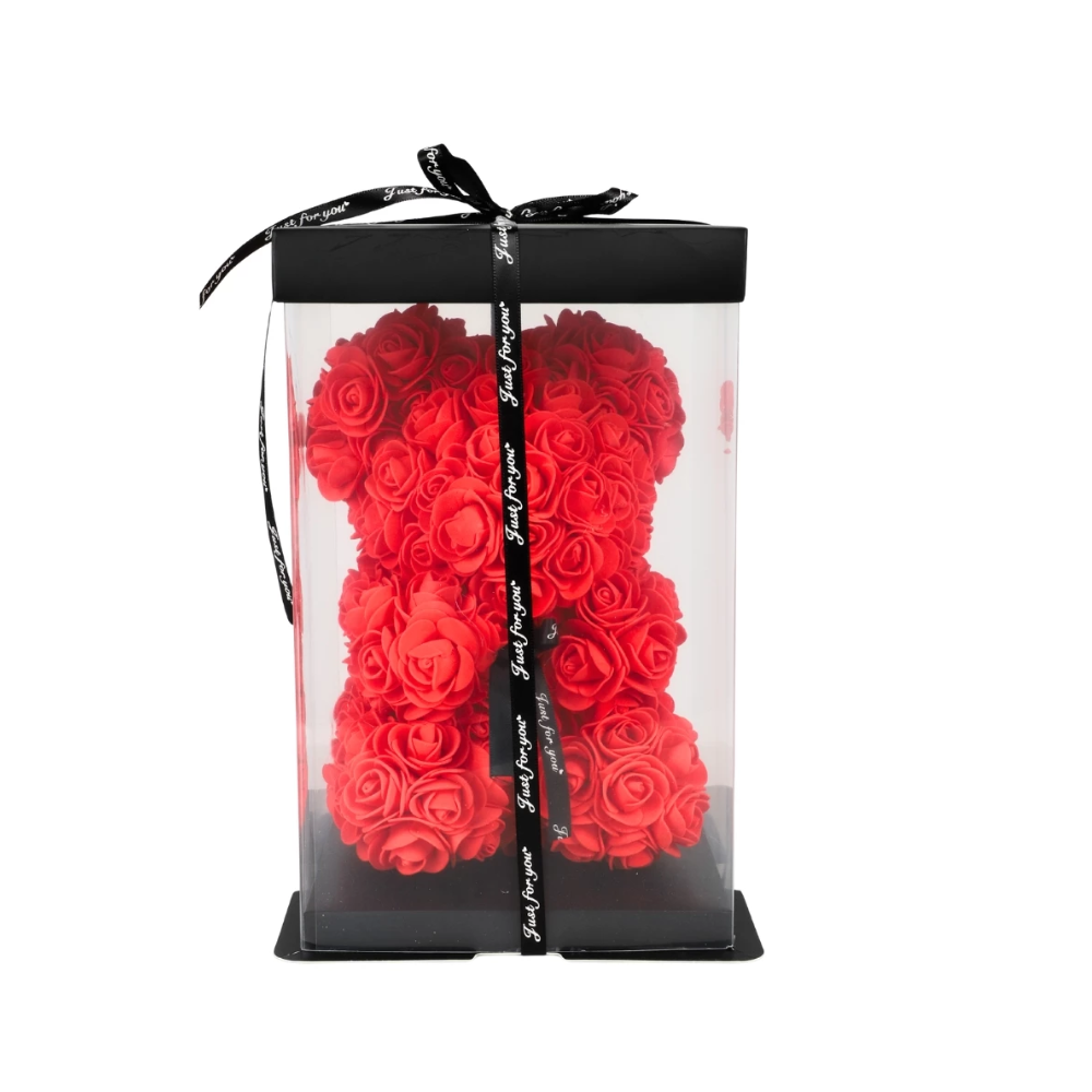 Överraska någon du håller kär med en vacker nalle tillverkad av konstgjorda rosor. Den röda färgen symboliserar kärlek och passion, vilket gör denna nalle till en perfekt present på Alla hjärtans dag eller vid andra romantiska tillfällen.