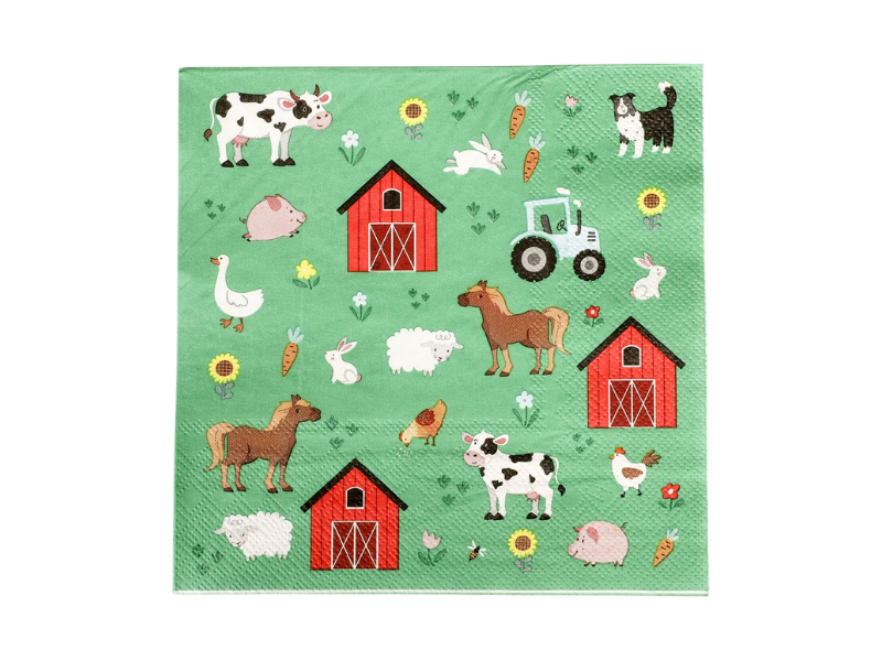 Skapa en lantlig och lekfull stämning vid kalasbordet med dessa servetter i bondgårdstema! Perfekta till barnkalas eller fester med djurtema.