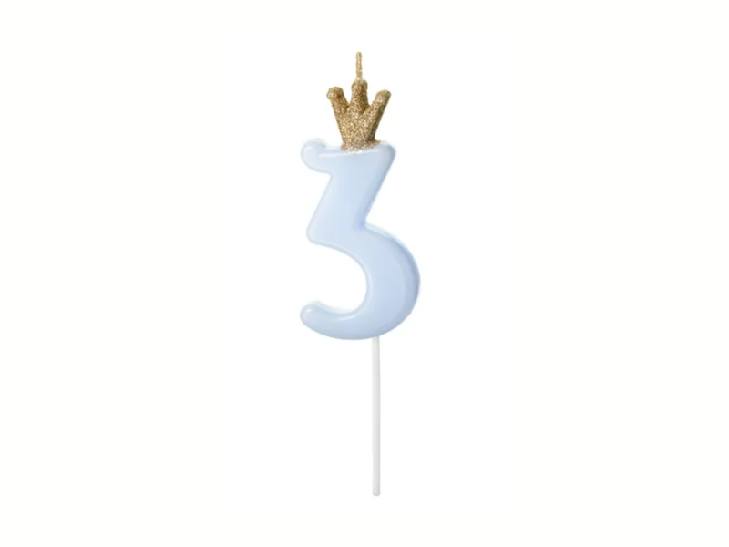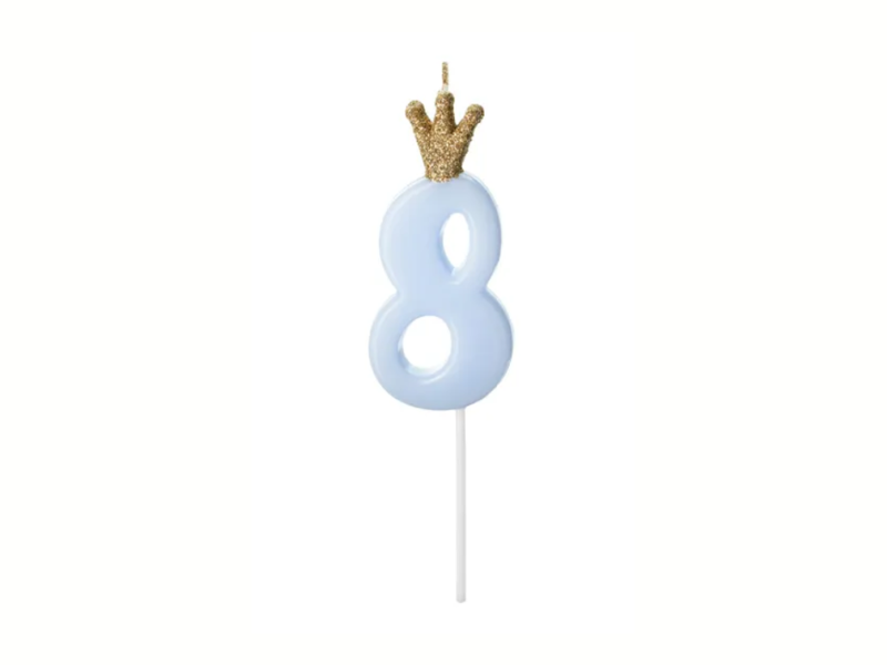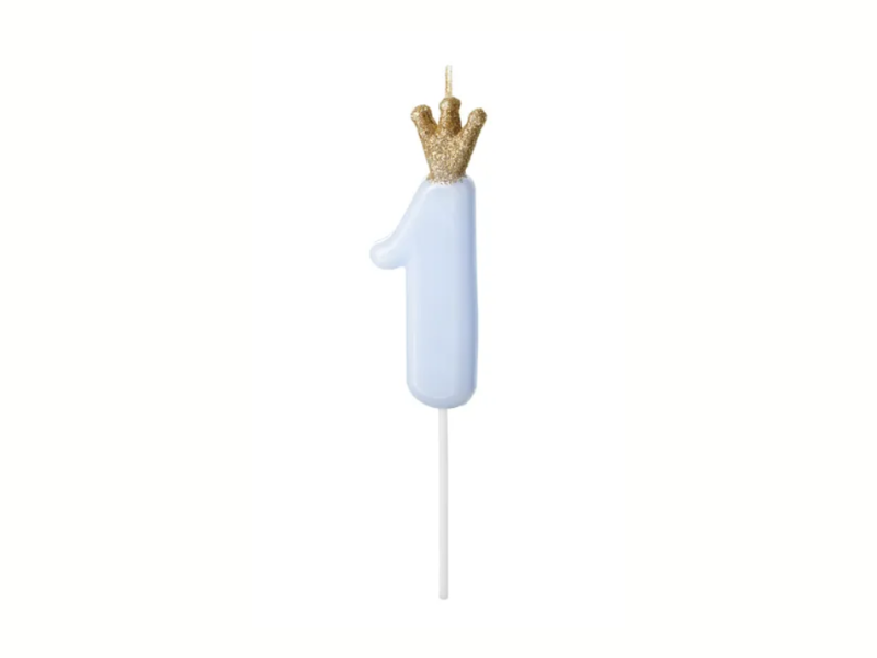 Fira en liten prins på hans stora dag med detta underbara siffertårtljus i ljusblått med en glittrande guldkrona på toppen! Perfekt till barnkalas eller födelsedagstårtan - en söt detalj som gör firandet extra magiskt.