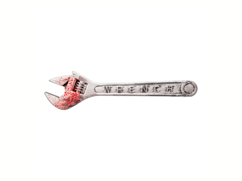Den här blodiga skiftnyckeln i plast ger en brutal men säker detalj till din skräckkostym. Perfekt som rekvisita till Halloween, teater eller maskerad.