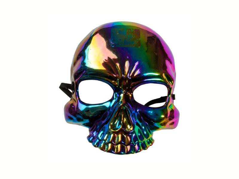 Gör intryck med denna färgskiftande dödskallemask i metallicfinish. Masken är tillverkad i lätt material och har en justerbar resår som håller den på plats under hela kvällen. Perfekt för dig som vill ha en unik look till maskerad, Halloween eller temafest.