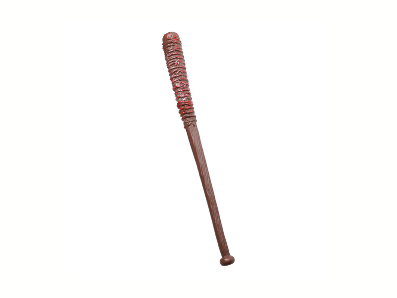 Det här blodiga slagträet i plast med detaljerad taggtrådsmålning är ett slående tillbehör för skräckutklädnad.