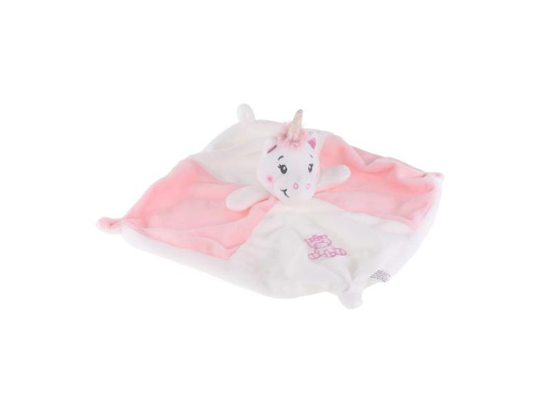Upptäck vår mysiga snuttefilt med en charmig enhörning. Den perfekta följeslagaren för din bebis. Med en storlek på 26x26 cm är denna snuttefilt tillverkad av mjukt och skonsamt material som ger både komfort och trygghet. Den uppfyller den europeiska säkerhetsstandarden för leksaker: EN71 del 1, 2 och 3, vilket garanterar att den är säker för alla åldrar och lämplig från födseln. Den söta enhörningen i mitten av filten skapar en känsla av magi och närhet, och kommer snabbt att bli ditt barns favorit. Med sin fina rosa färg och charmiga design är denna snuttefilt ett utmärkt tillskott till barnets säng och en perfekt present för nyblivna föräldrar. Säkerställ en lugn och trygg sömn för din bebis med vår älskvärda rosa snuttefilt med enhörning.