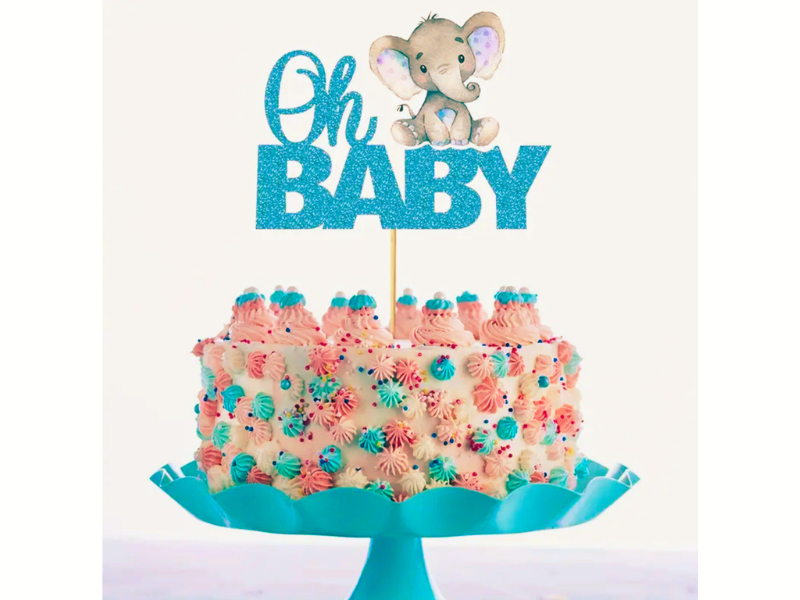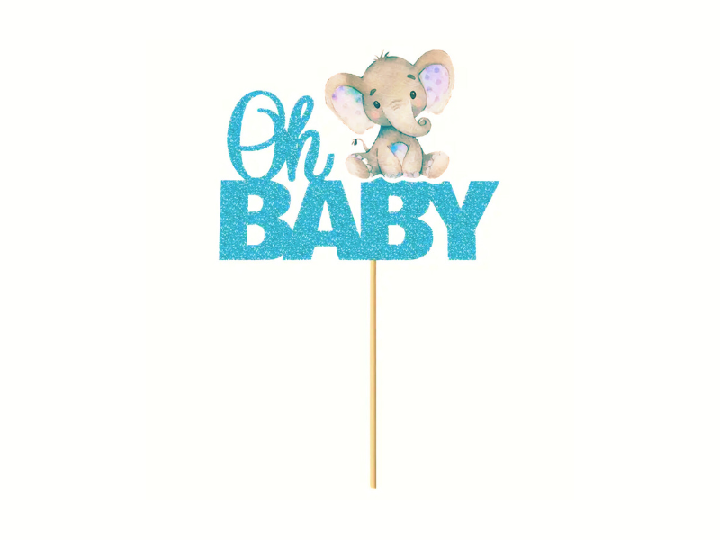 Skapa en magisk stämning på babyshowern med denna charmiga tårtdekoration i glittrigt ljusblå färg! Dekorationen pryds av en söt liten elefant och texten Oh BABY, vilket gör den till en perfekt detalj för att fira en liten pojkes ankomst.