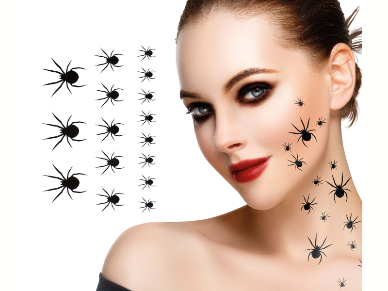 Kryp fram till festen med dessa kusliga spindel-tatueringar! Paketet innehåller självhäftande tatueringar i form av realistiska spindlar - perfekta för Halloween, maskerad eller temafest.