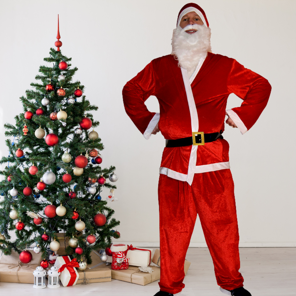 Gör dig redo för julfesten, företagseventet eller barnens tomtebesök med denna fullständiga vuxentomtedräkt i klassiskt julrött. Setet innehåller allt du behöver: hatt, jacka, byxa, skägg och bälte – alla delar ingår. Dräkten är tillverkad i 100 % polyester vilket ger god slitstyrka och enkel skötsel. Den klassiska designen skapar rätt julstämning och låter dig gå “all‑in” på rollen som tomten utan att behöva komplettera tillbehör.