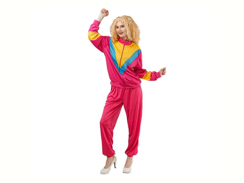 Återupplev det glada 80-talet i denna färgsprakande träningsoverall! Perfekt för maskerad, temafest eller för dig som vill pigga upp träningspasset med en rejäl dos retrostil.